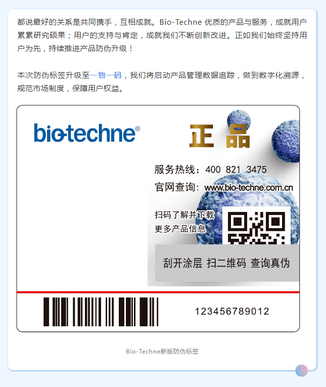 Bio-Techne 防偽標簽全面升級 | 一物一碼,全程可溯
