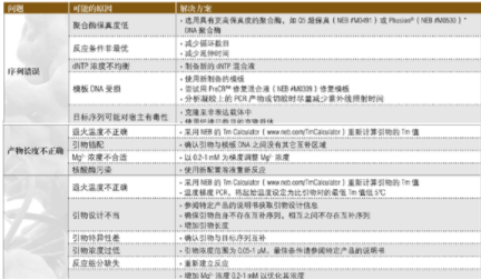 下面的指南可用于解決 PCR 反應(yīng)中出現(xiàn)的問題。關(guān)于優(yōu)化反應(yīng)的更多建議可訪問 NEB 網(wǎng)站的技術(shù)參考部分。