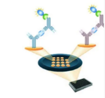 多因子檢測是一種基于96孔板夾心法酶聯(lián)免疫檢測技術。涉及到特異性針對各標志物的包被抗體和檢測抗體。把樣本和校準品加入到包被了抗體的96孔板點陣中,這樣就能在96孔板中固定住它們的位置。洗去未結合的蛋白,加入特異性生物素標記的多因子抗體混合物。