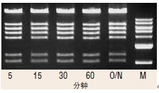 1 μl SalI 5 分鐘內(nèi)消化 1 μg DNA,結果顯示長時間酶切或過夜 (O/N) 消化沒有核酸酶污染。