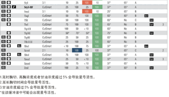 1. 延時酶切、高酶濃度或者甘油濃度超過 5% 會導致星號活性。