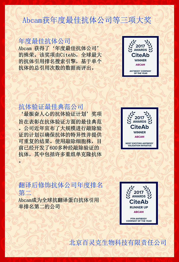 Abcam獲年度最佳抗體公司等三項(xiàng)大獎(jiǎng)