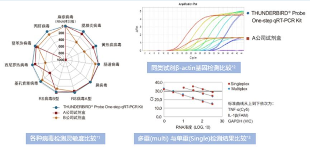 本試劑盒是使用了高效率逆轉(zhuǎn)錄酶ReverTra Ace和PCR酶Tth DNA Polymerase的兩酶體系一步法熒光定量PCR試劑盒。通過將兩種酶與最優(yōu)化的buffer相組合,可以對微量RNA進行迅速定量。適用于對RNA病毒及低表達量mRNA的定量。同時,不易受目的基因序列的影響,可高靈敏度地檢測出各種RNA。