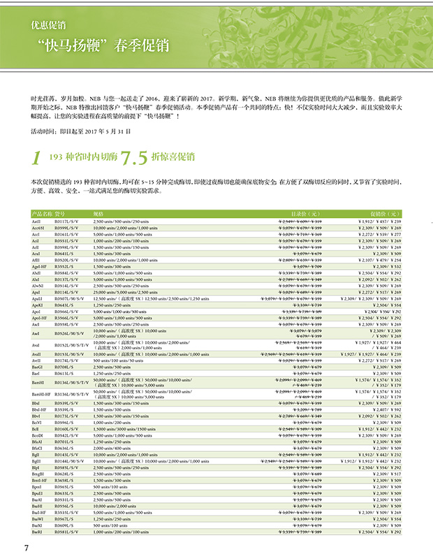 1、 193 種省時內(nèi)切酶 7.5 折驚喜促銷